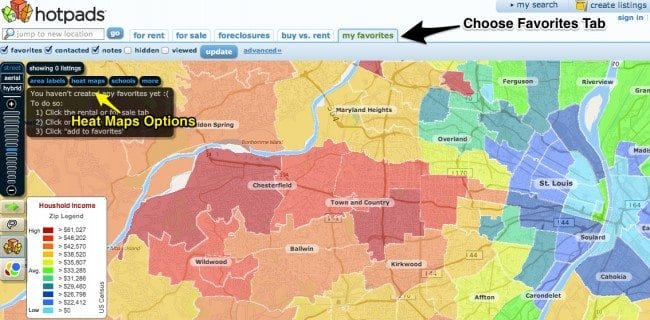 When using the Hotpads heat map to understand which are the most expensive and least expensive parts of town, the first thing you will want to do it so choose the Favorites tab.